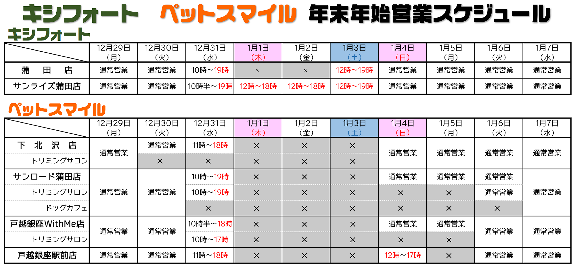 営業時間 10:00a.m.- 19:30p.m. ※2025年1月4日より10:00a.m.-19:30p.m.になりました