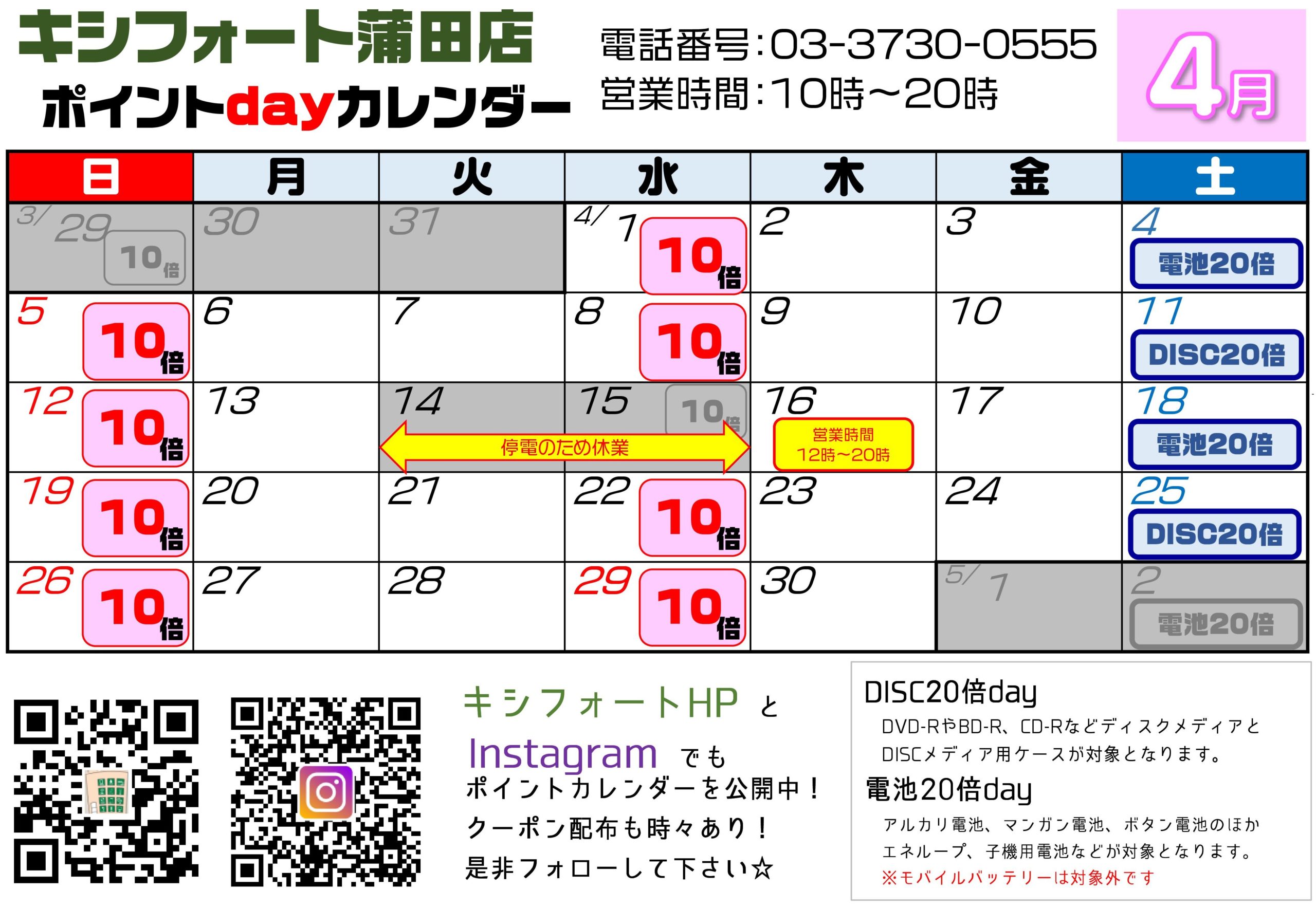 4月14日(火)、4月15日(水)に西蒲田サンロード商店街で受電設備工事が行われる予定です。 商店街の一部が停電となります影響で、「キシフォート蒲田店」と「ペットスマイル サンロード蒲田店」の2店舗が休業となります。4月16日(木)12時頃には営業再開の予定ですので、お客様には大変ご不便、ご迷惑をおかけ致しますが、何卒ご理解のほど宜しくお願い申し上げます。